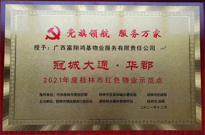 廣西富翔鴻基物業服務有限責任公司成立于2001年5月,注冊資金為人民幣1000萬元,為中國物業協會理事單位,廣西物業管理專業委員會副主任單位,桂林市物業服務行業協會副會長單位。自成立以來,嚴格遵循“業主至上”的工作宗旨,大力倡導“嚴格苛求、自覺奉獻”的工作精神。